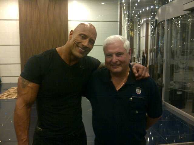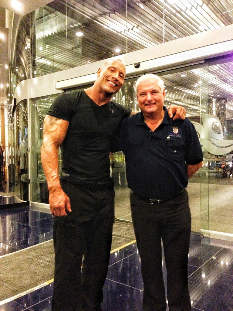 ذا روك يلتقي برئيس جمهورة بنما اثناء تصوير برنامج THE HERO